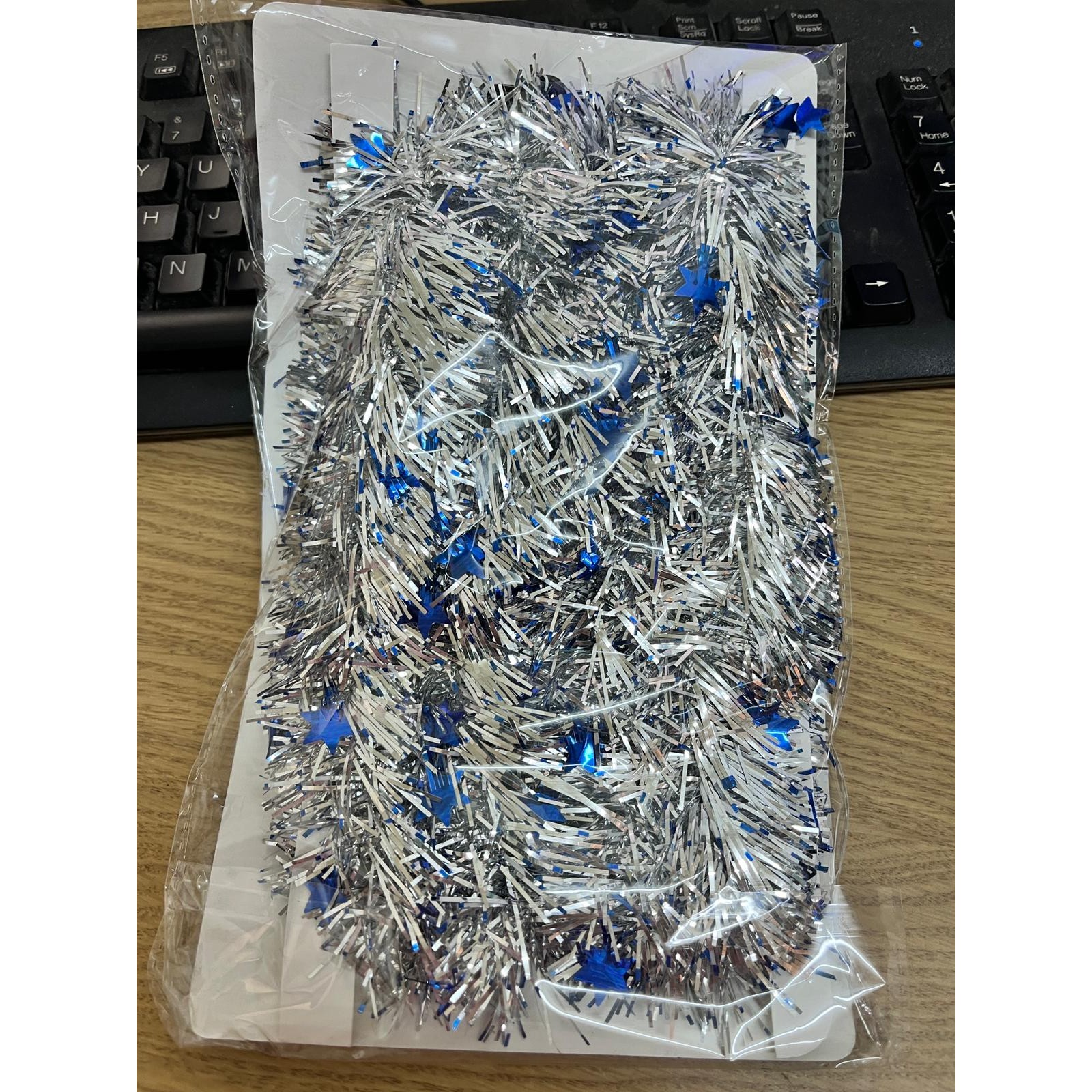 Beteala de Craciun cu LED, Flippy, 2 m, 5 cm Grosime, din PVC, Model cu Stelute, Artificiala, Albastru/Argintiu