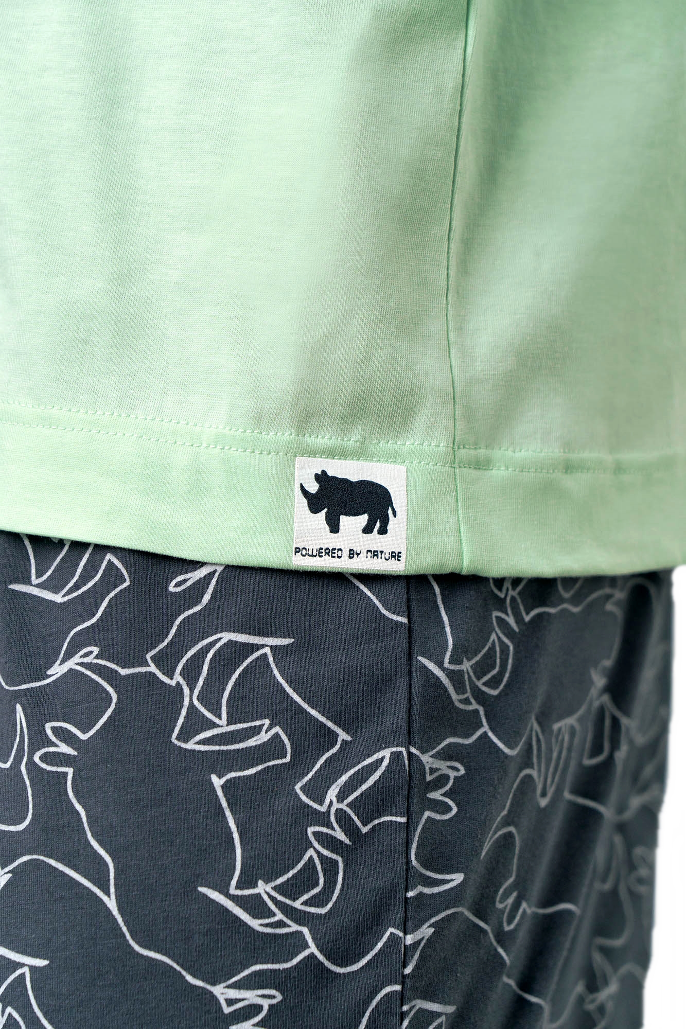 - Culori plăcute de vară, completate de un imprimeu grafic unic cu siluete de rinoceri.