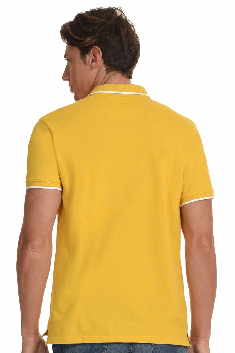 Tricou pentru bărbați Splendid, stil polo, realizat din 100% bumbac. Materialul este rezistent și conferă o ținută elegantă. Tricoul dispune de o fenta cu 2 nasturi funcționali, iar gulerul și manșetele sunt decorate cu dungi albe pentru un detaliu rafinat. Este o alegere versatilă, potrivit pentru orice tip de corp și pentru orice sezon al anului.