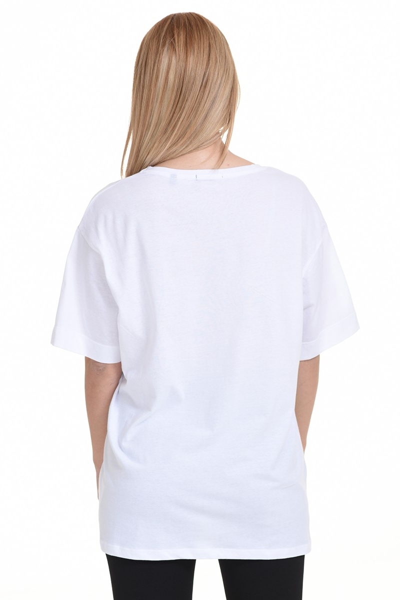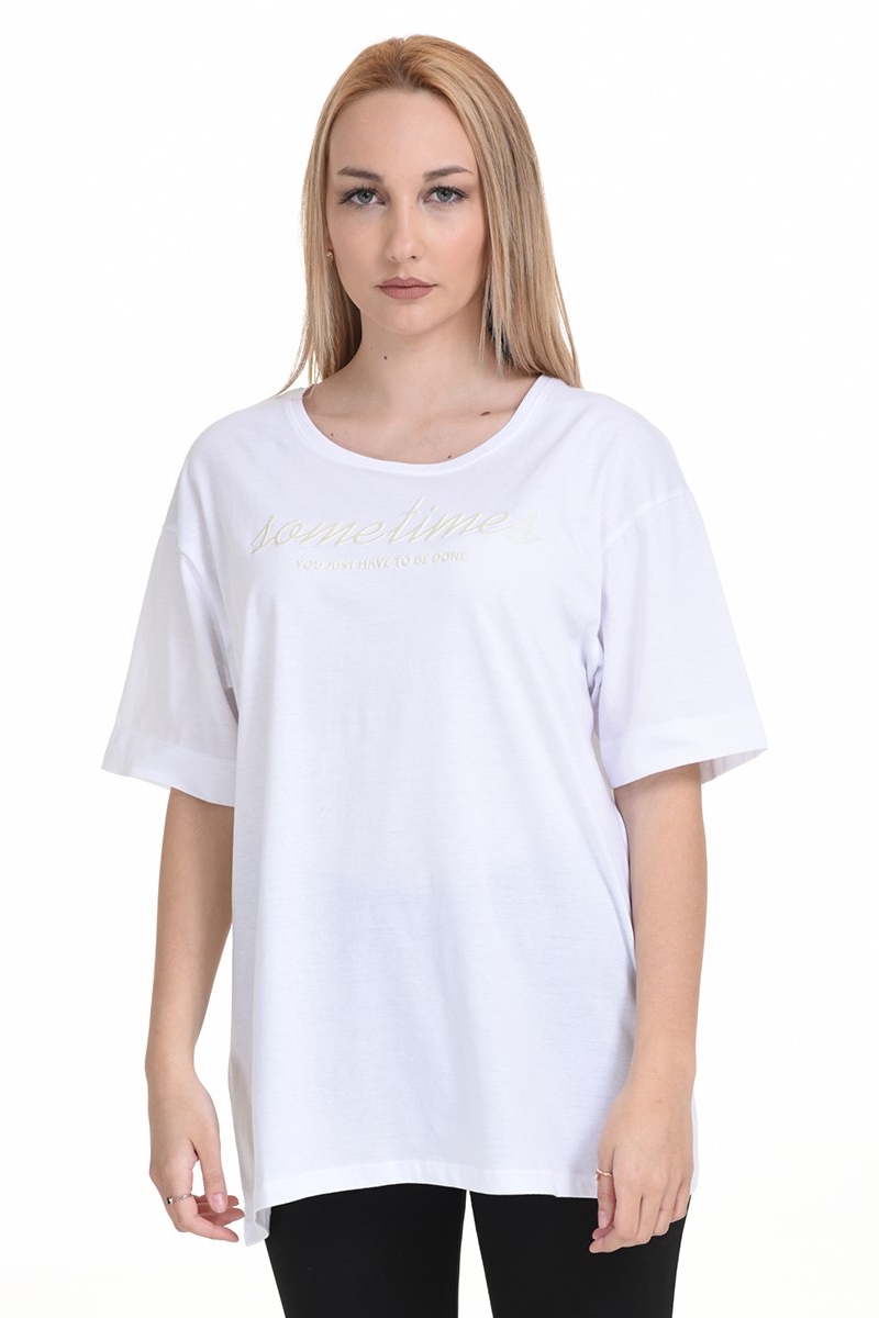 Tricou pentru femei Biston, realizat din 100% bumbac, cu un material ușor, igienic și extrem de confortabil. Croiul lejer, decolteul rotund și mânecile trei sferturi îl fac perfect pentru zilele călduroase. Printul frontal discret adaugă un detaliu subtil de stil. Este potrivit pentru orice tip de corp și se asortează cu ușurință la ținutele casual, fiind o alegere versatilă și practică.