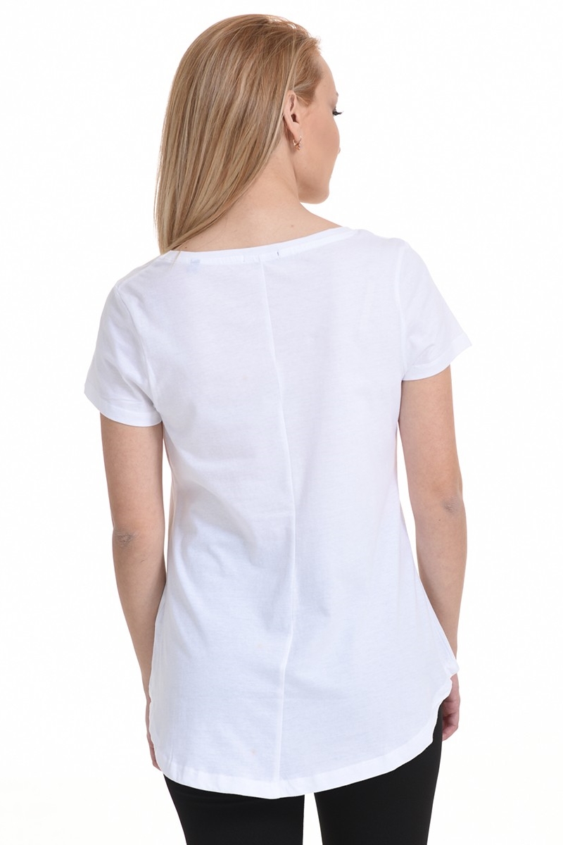 Tricou pentru femei Biston, confecționat din 100% bumbac. Materialul ușor, igienic și extrem de confortabil asigură o purtare plăcută pe parcursul întregii zile. Croiul lejer, cu decolteu amplu, este ideal pentru zilele călduroase. Printul frontal, elegant și plăcut, adaugă un plus de stil. Se potrivește oricărui tip de corp și se asortează cu ușurință la ținute casual.